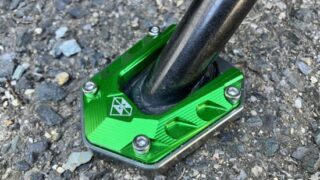 サイドスタンドが柔らかい地面にめり込んで、バイクが倒れてしまう危険を感じたことないですか? 高強度計量アルミで出来た、スタンドの先に取り付けるプレートの紹介です。購入してつけてみましたが、以前ほど停車地の選択に悩まなくなりました。